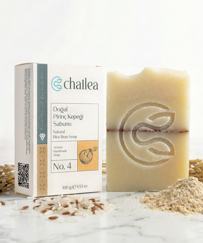 Chailea Doğal Pirinç Kepeği Sabunu (100 g), soğuk yöntemle üretilen ve kastil sabunu geleneğinden ilham alan bitkisel yağ dengesiyle hazırlanmış katı sabundur. Parfüm içermez; koku çay ağacı esansiyel yağının doğal bitkisel notasından gelebilir.
